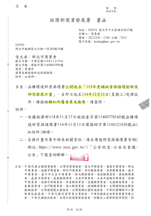115年度補助資源循環創新及研究發展計畫即日起至114年12月31日止